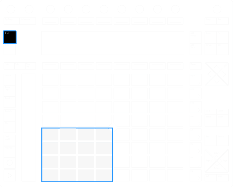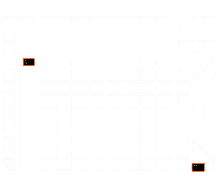 In Loop Selector Layout the layout it will momentarily change to 16 Velocities Layout and vice versa.If In 64 Pads Layout, it will momentarily show the Loop Selector on the first row of Pads